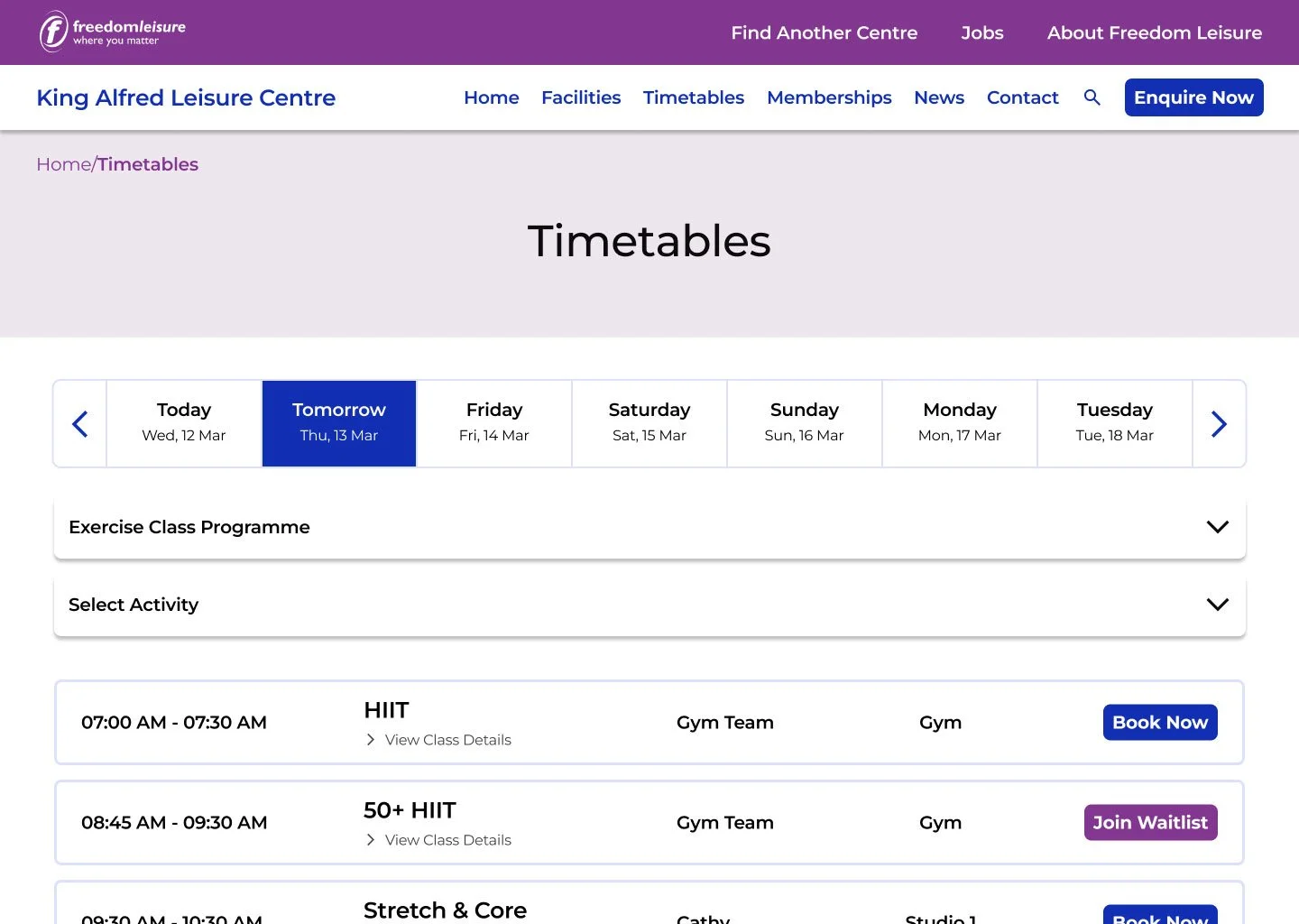 Regarding the existing timetable design, I expanded the range of available dates by adding arrows on both ends of the days. While it is unclear why this feature has not been already implemented, the current outdated system does allow users to book activities up to a week in advance.