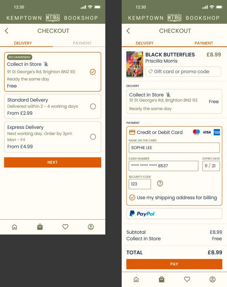 However, user testing revealed that reducing the number of checkout steps did not impact the completion rate. All the essential information, such as the item, price and customer address, have been placed for the user to check before putting in their payment details.