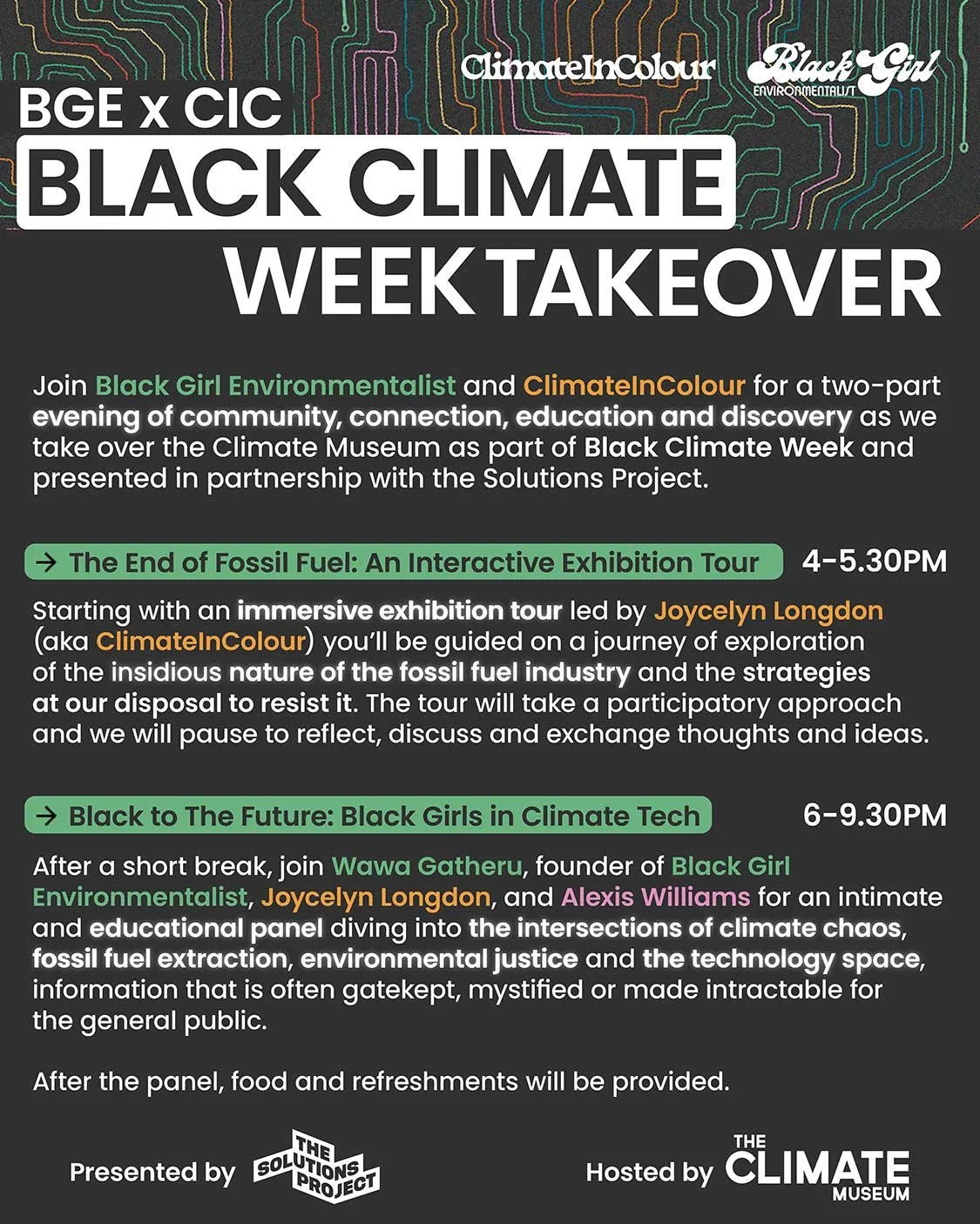 Hosted by Joycelyn Longdon (formerly ClimateInColour) and the Black Girl Environmentalist, this event aimed to make the intersections of climate chaos, fossil fuel extraction, environmental justice and the technology space more accessible.